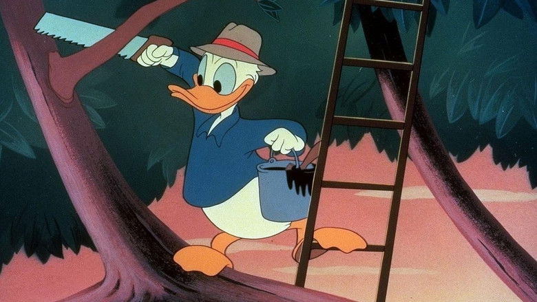 Donald's doing a little tree surgery when he spots Chip 'n' Dale gathering nuts. He saws off the branch outside their hole and paints it with tar, which Dale gets stuck in. Then Donald has a little fun with the long-handled pruning shears.